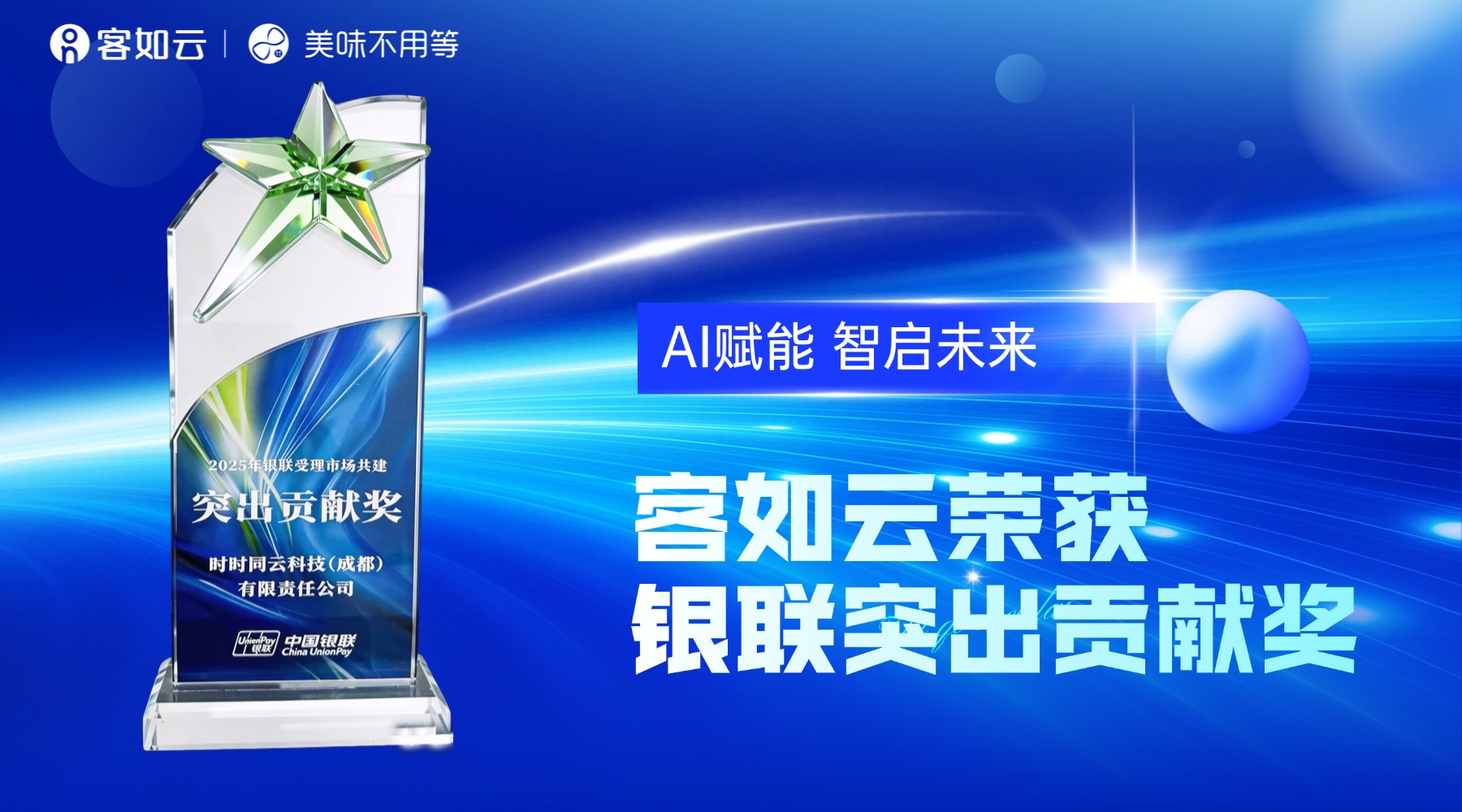 在全球支付生态加速演进、中国银联全力构建融合“泛账户方”与“泛受理方”新“四方模式”的背景下,本地商业智能服务平台客如云(时时同云科技),凭借在智能点餐场景融合及云闪付受理推广中的卓越贡献,近日荣膺中国银联颁发的"2025 年银联受理市场共建突出贡献奖"。